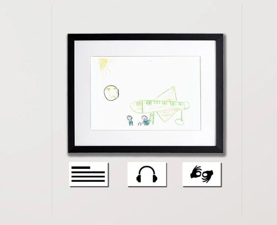Η ψηφιακή έκθεση «(Α)ΟΡΑΤΟ ΤΡΑΥΜΑ» είναι πλήρως προσβάσιμη σε άτομα με αναπηρία (ΑμεΑ). Το κοινό έχει τη δυνατότητα να πλοηγηθεί στις ζωγραφιές των παιδιών, να διαβάσει, να ακούσει ή και να δει τις σχετικές αφηγήσεις με διερμηνεία στην Ελληνική Νοηματική Γλώσσα και στη Διεθνή Νοηματική (International Sign).