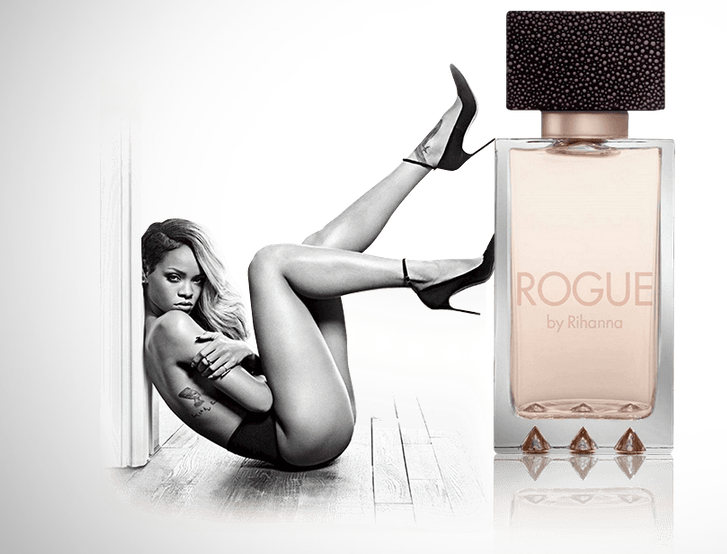 Στη διαφημιστική αφίσα του Rogue εικονίζεται η Ριάνα ημίγυμνη, καθισμένη στο πάτωμα έχοντας τα πόδια της ψηλά, ακουμπισμένα σε ένα μπουκάλι του αρώματος.Η εταιρεία Parlux Fragrances ανακοίνωσε ότι η φωτογραφία δεν είναι απρεπής, προσβλητική, με υπονοούμενα ή υποτιμητική.