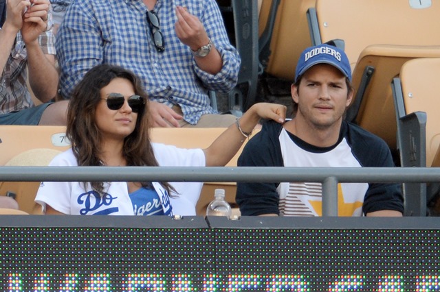 Άστον Κούτσερ και Μίλα Κούνις σε αγώνα baseball