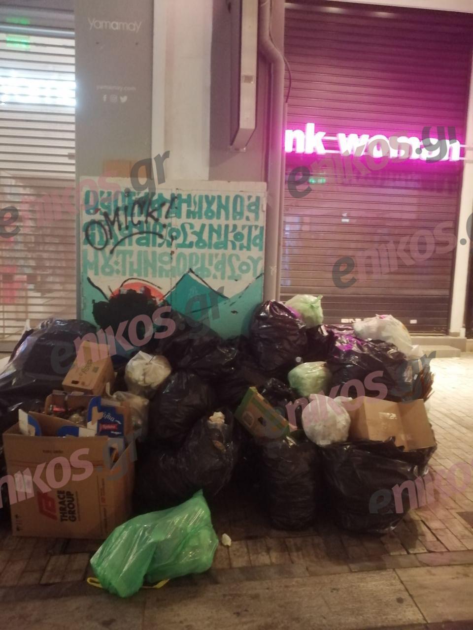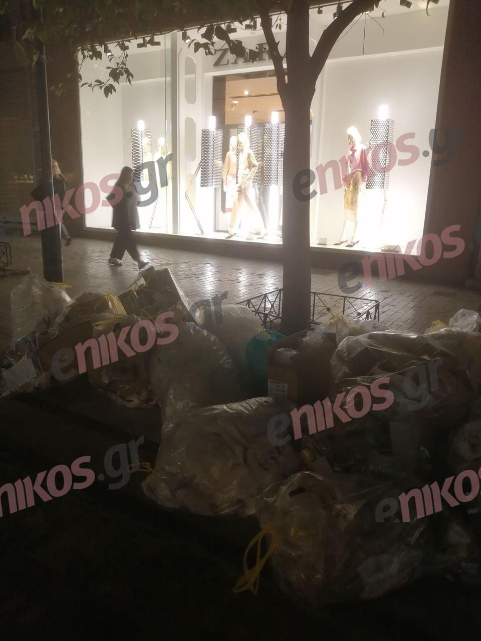 Οι σακούλες σκουπιδιών βρίσκονται στοιβαγμένες σε διαφορετικά σημεία της Ερμού, κάνοντας την κατάσταση αφόρητη τόσο για τους κατοίκους και τους καταστηματάρχες όσο και για τους χιλιάδες τουρίστες που επισκέπτονται την χώρα μας και φυσικά περνούν από τον συγκεκριμένο εμπορικό δρόμο.