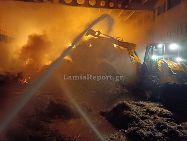 Στο σημείο έσπευσαν 12 πυροσβεστικά οχήματα και μία Ομάδα ΕΜΟΔΕ, που έδωσαν μάχη με τις φλόγες, καθώς καταστράφηκαν περίπου 2.500 μπάλες τριφυλλιού, βρώμης και κριθαριού.