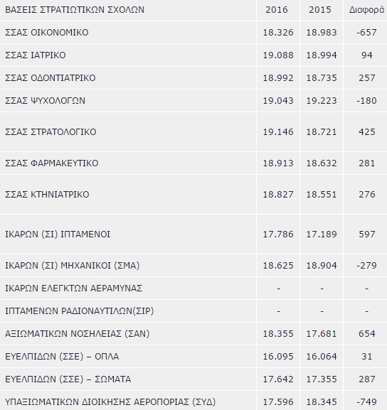 Οι αυξομειώσεις στις θέσεις των υποψήφιων σπουδαστών των Στρατιωτικών Σχολών αναμένεται να επιφέρει αύξηση στις βάσεις 2017.