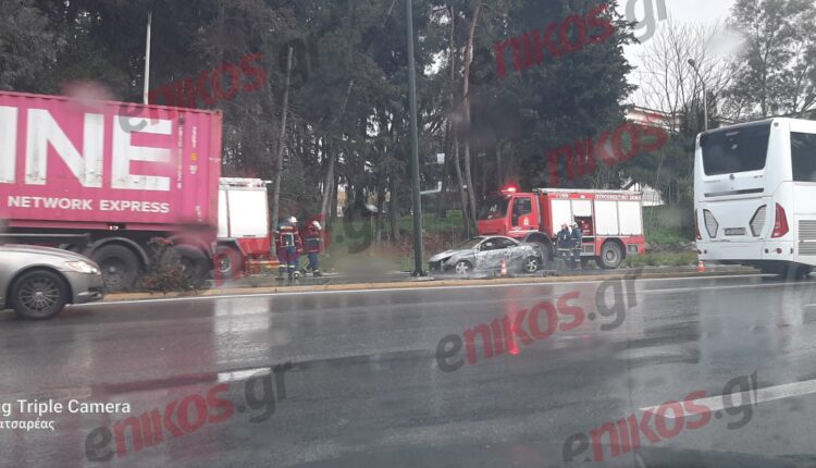 Φωτιά ξέσπασε σε αυτοκίνητο το οποίο κινείτο στην Νέα Εθνική Οδό Αθηνών – Κορίνθου, στο ρεύμα προς Κόρινθο, στην περιοχή του Χαϊδαρίου, όπως φαίνεται στη φωτογραφία που έστειλε αναγνώστης του enikos.gr.
