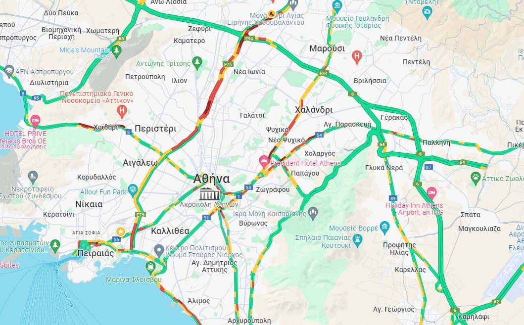 Στο σημείο η κίνηση είναι πολύ αυξημένη καθώς οι οδηγοί που κινούνται στην περιοχή μειώνουν ταχύτητα.