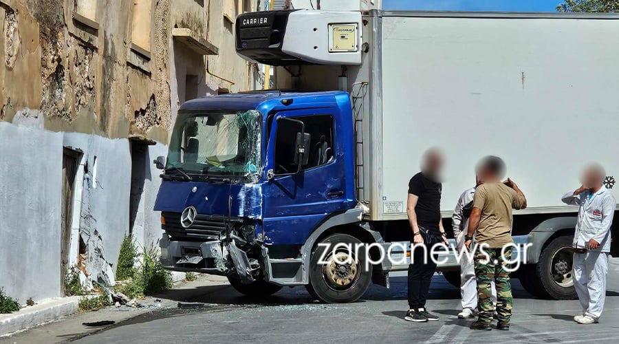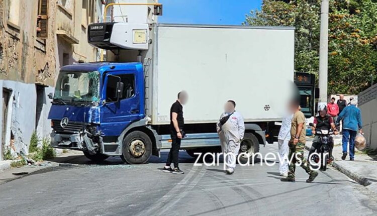 Χανιά: Φορτηγό εξετράπη της πορείας του και «καρφώθηκε» σε τοίχο – Δείτε ΦΩΤΟ