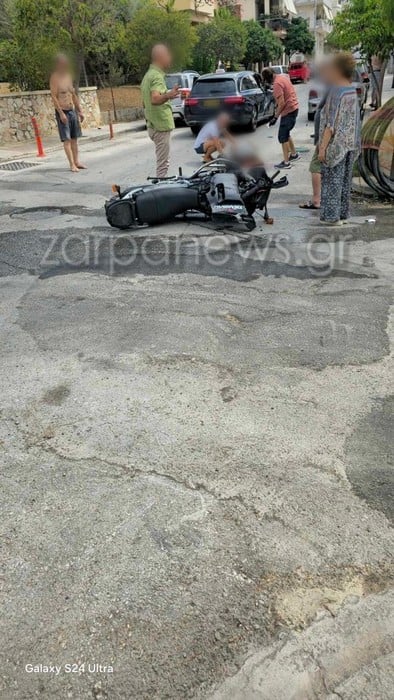 Τροχαίο ατύχημα σημειώθηκε λίγο μετά τις τρεις το μεσημέρι του Σαββάτου (31/08), στην περιοχή της Αμπεριάς, στα Χανιά και συγκεκριμένα επί των οδών Βάμου και Κνωσσού.