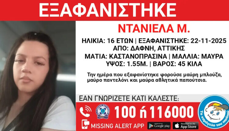 Δάφνη: Συναγερμός για την εξαφάνιση της 16χρονης Ντανιέλα – Η ανακοίνωση από το «Χαμόγελο του Παιδιού»