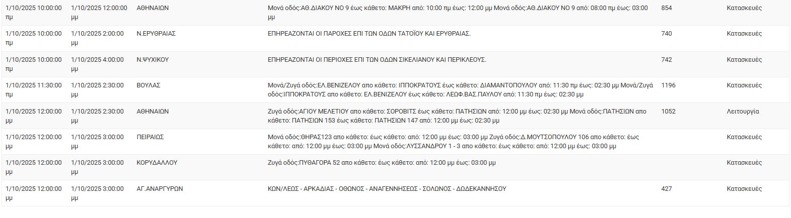 ΔΕΔΔΗΕ: Διακοπές ρεύματος σήμερα (1/10) στην Αθήνα και σε άλλες 13 περιοχές της Αττικής