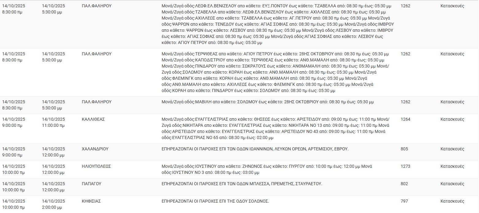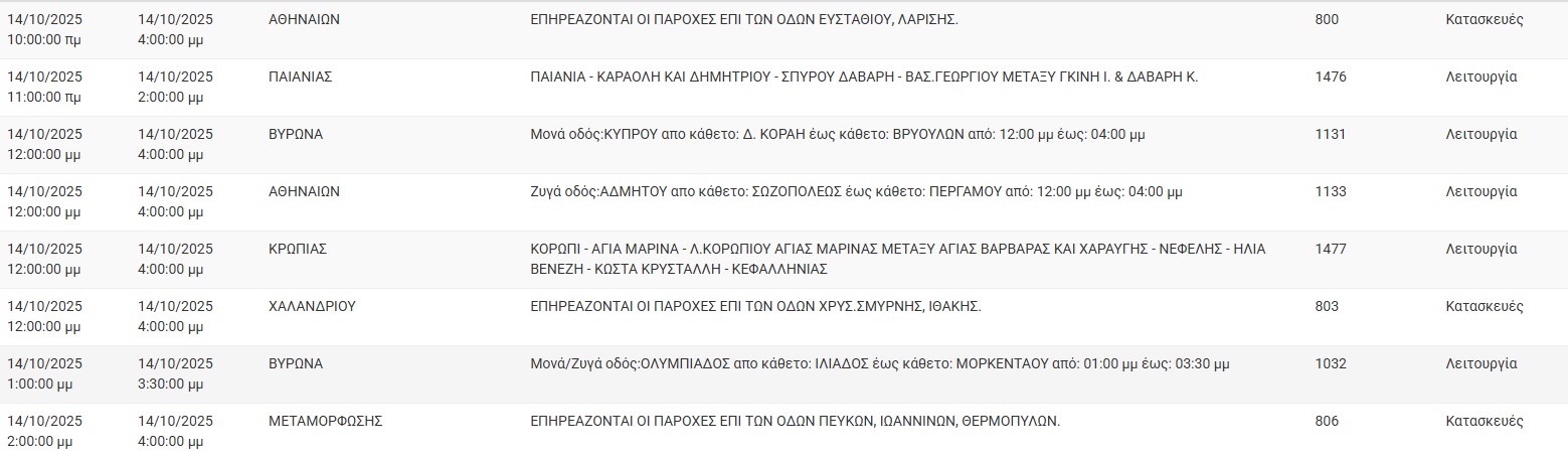 ΔΕΔΔΗΕ: Διακοπές ρεύματος σήμερα (14/10) στην Αθήνα και σε άλλες 17 περιοχές της Αττικής