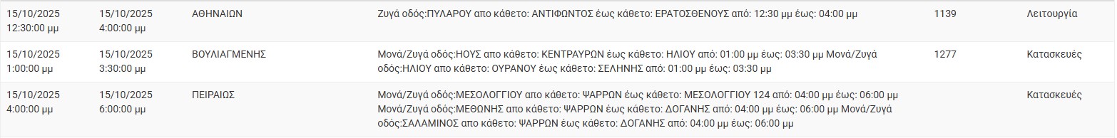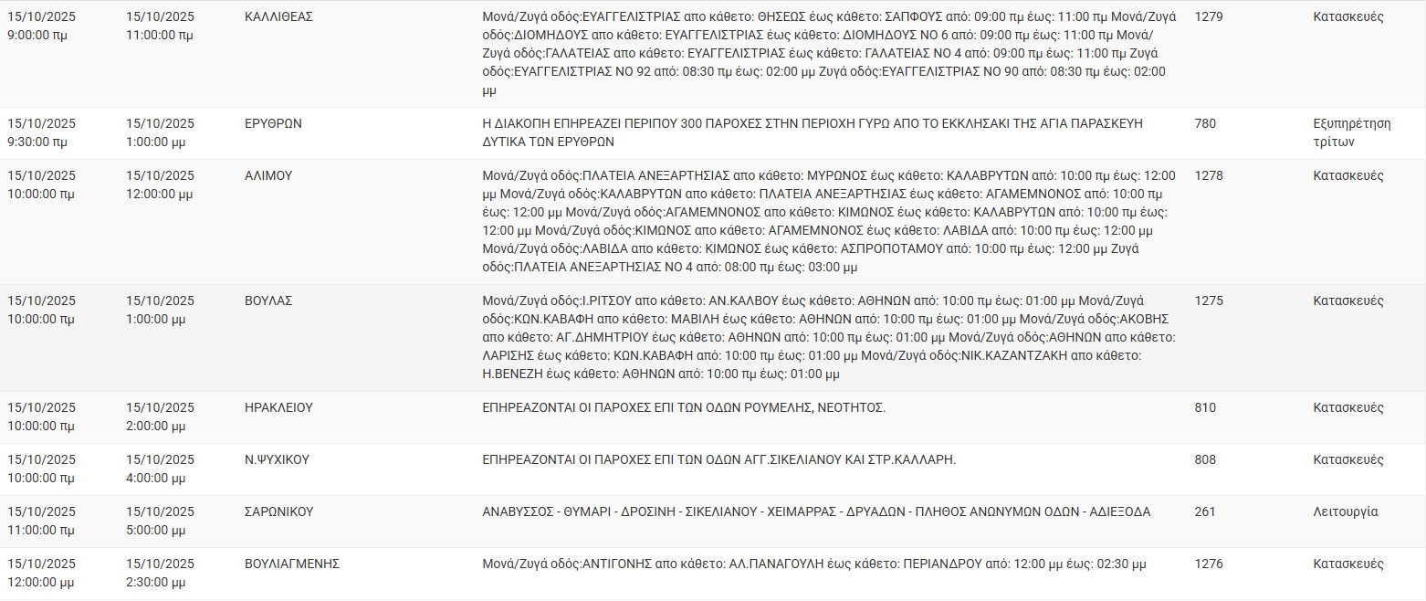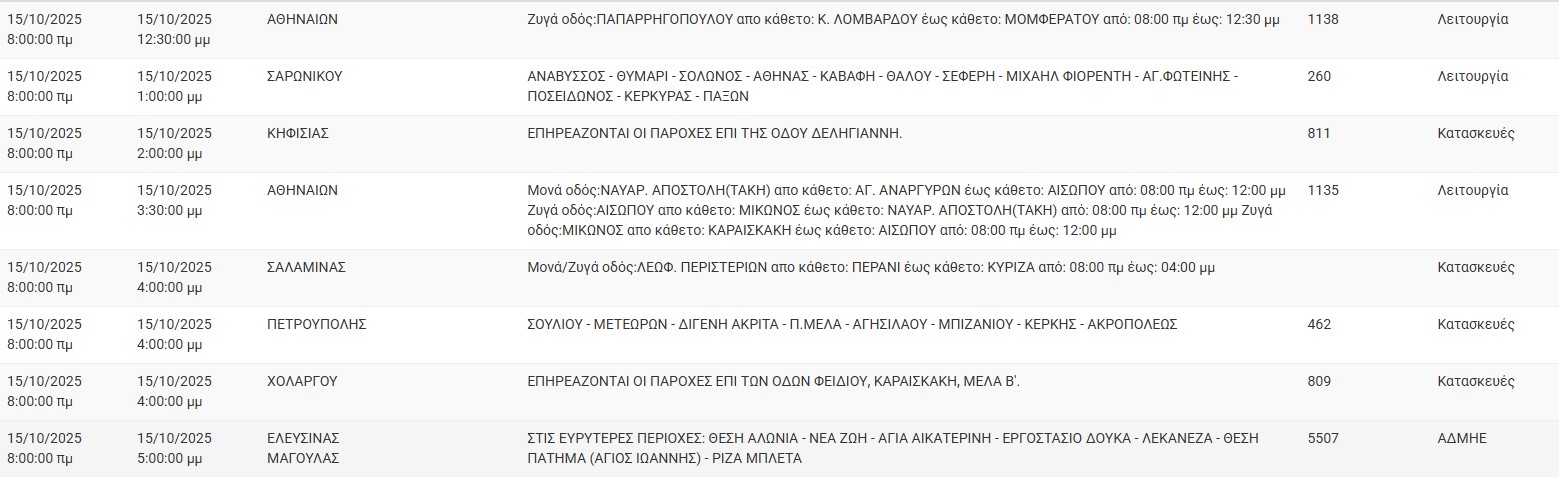 ΔΕΔΔΗΕ: Διακοπές ρεύματος σήμερα (15/10) στην Αθήνα και σε άλλες 16 περιοχές της Αττικής
