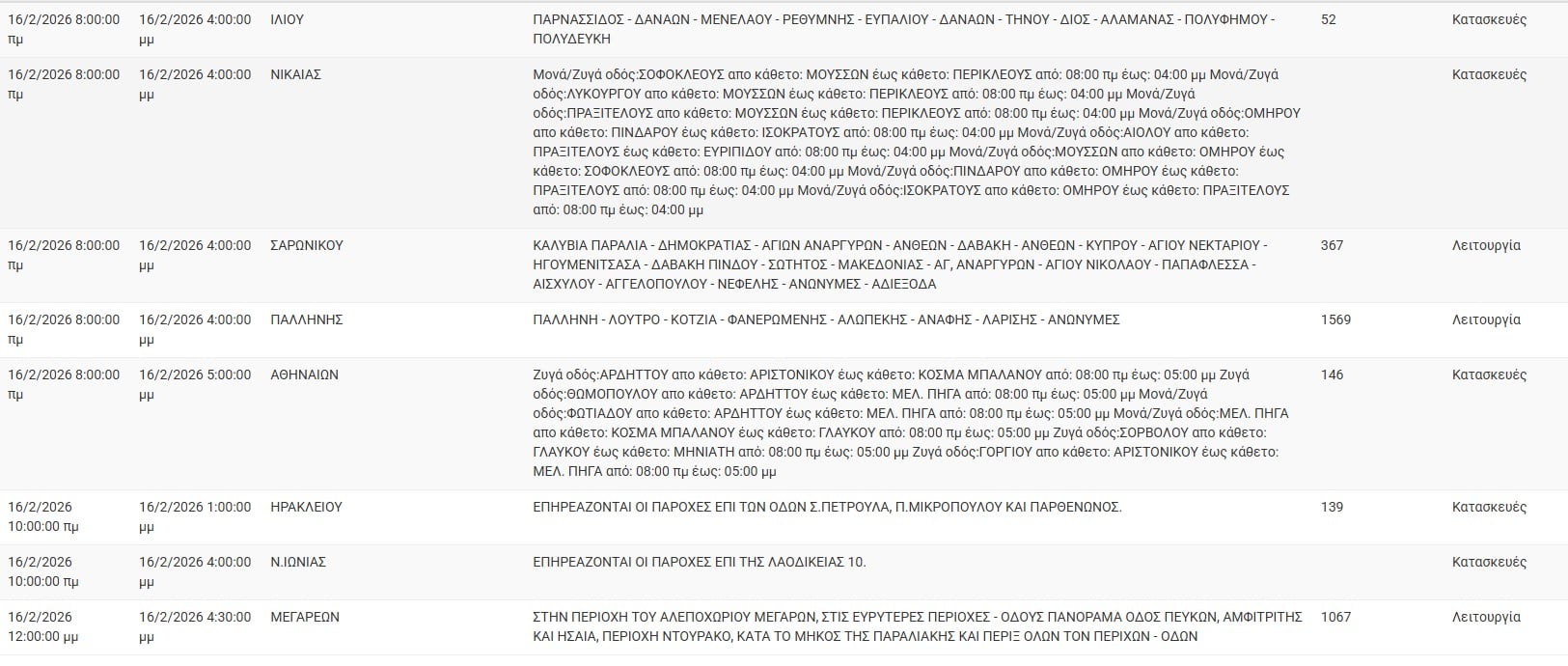 Διακοπές ρεύματος έχει προγραμματίσει για σήμερα, Δευτέρα 16 Φεβρουαρίου 2026, ο ΔΕΔΔΗΕ σε διάφορες περιοχές της Αττικής.