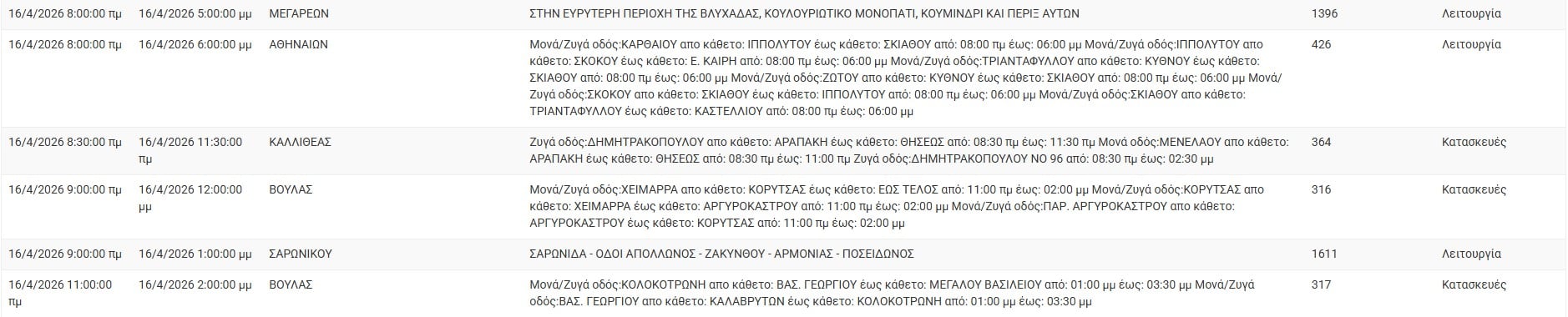 Διακοπές ρεύματος έχει προγραμματίσει για σήμερα, Πέμπτη 16 Απριλίου 2026, ο ΔΕΔΔΗΕ σε διάφορες περιοχές της Αττικής.