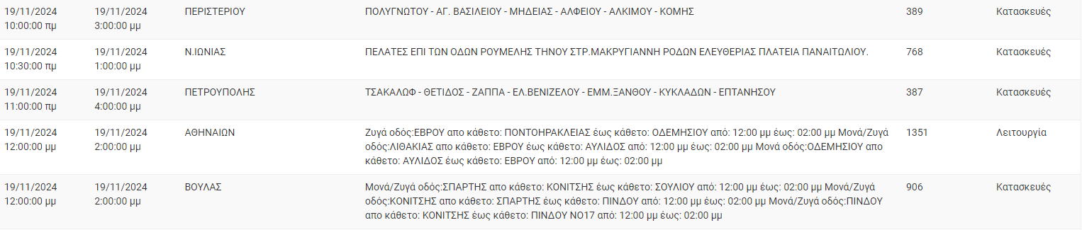 ΔΕΔΔΗΕ: Διακοπές ρεύματος σήμερα (19/11) στην Αθήνα και σε άλλες 10 περιοχές της Αττικής