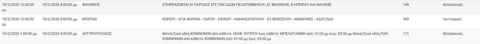 Διακοπές ρεύματος έχει προγραμματίσει για σήμερα, Πέμπτη 19 Φεβρουαρίου 2026, ο ΔΕΔΔΗΕ σε διάφορες περιοχές της Αττικής.