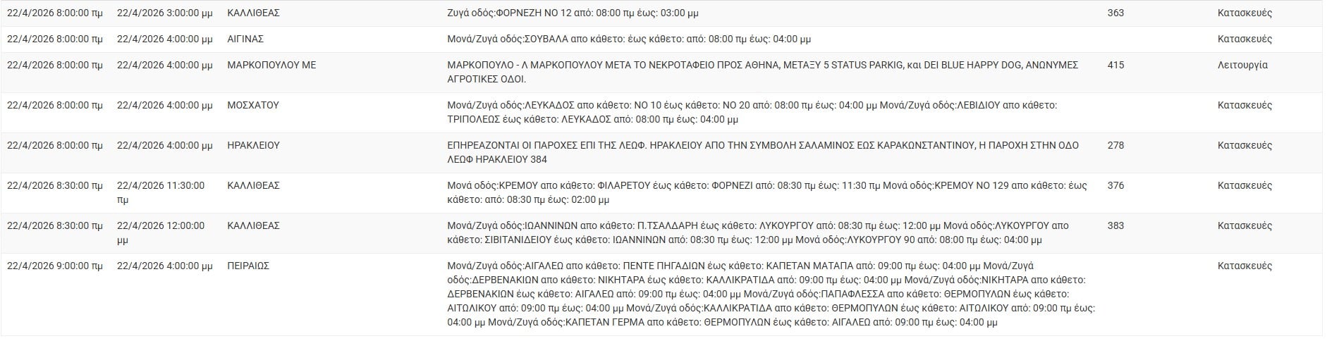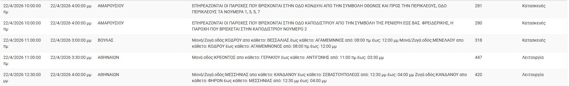 Διακοπές ρεύματος έχει προγραμματίσει για σήμερα, Τετάρτη 22 Απριλίου 2026, ο ΔΕΔΔΗΕ σε διάφορες περιοχές της Αττικής.