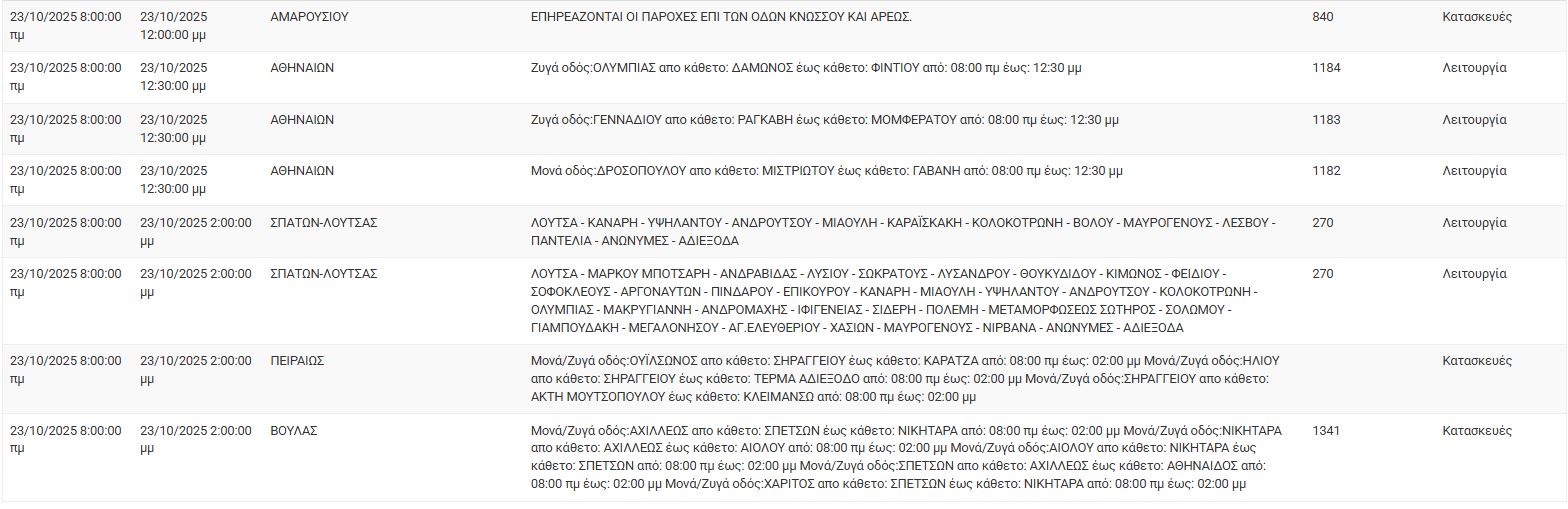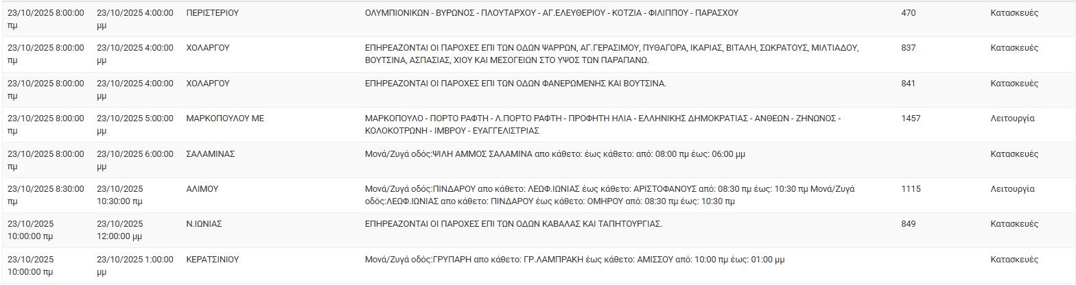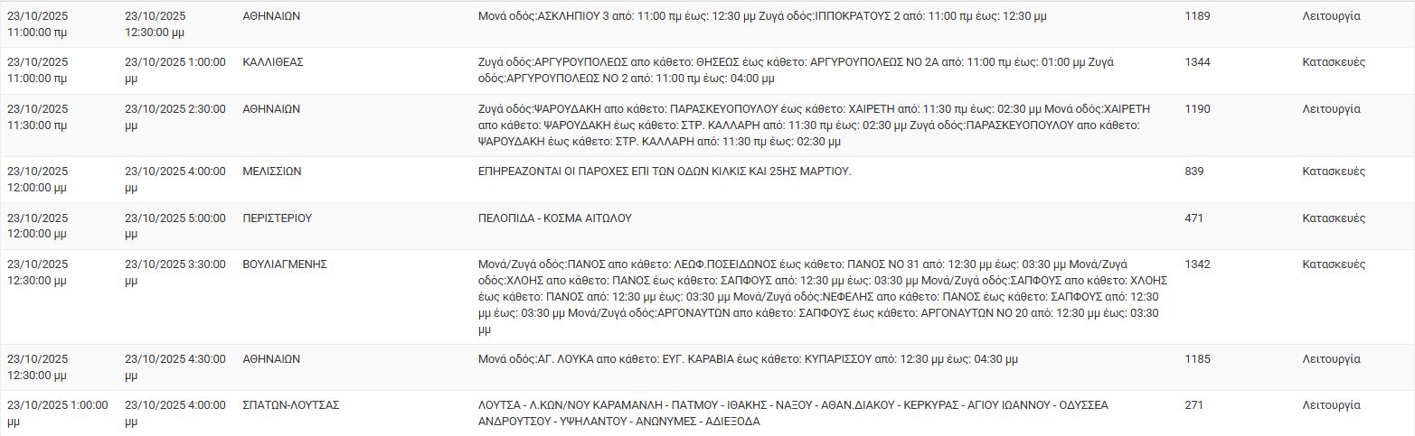 ΔΕΔΔΗΕ: Διακοπές ρεύματος σήμερα (23/10) στην Αθήνα και σε άλλες 17 περιοχές της Αττικής