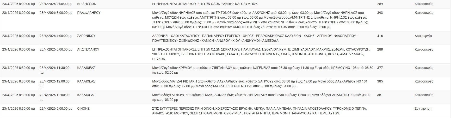 ΔΕΔΔΗΕ: Διακοπές ρεύματος σήμερα (23/4) στην Αθήνα και σε άλλες 9 περιοχές της Αττικής