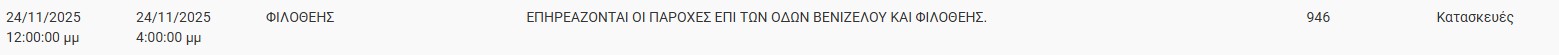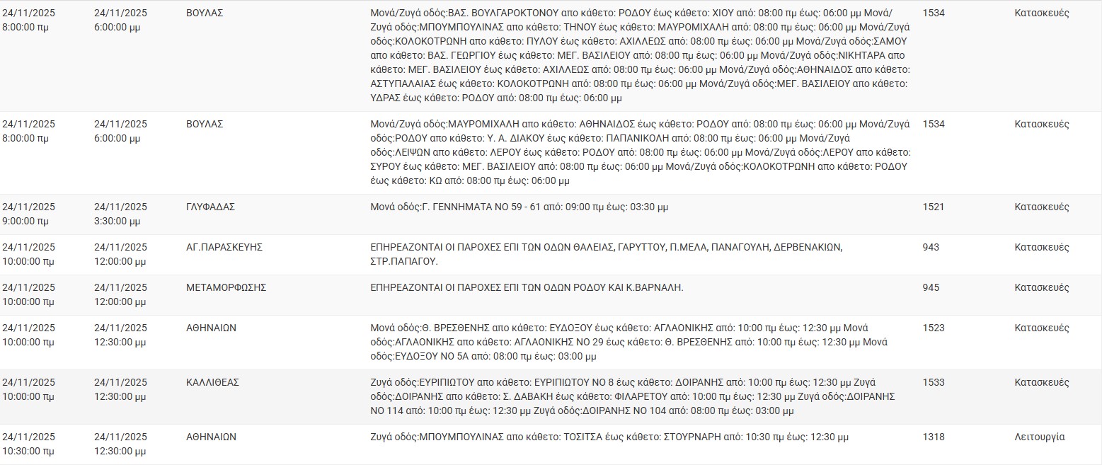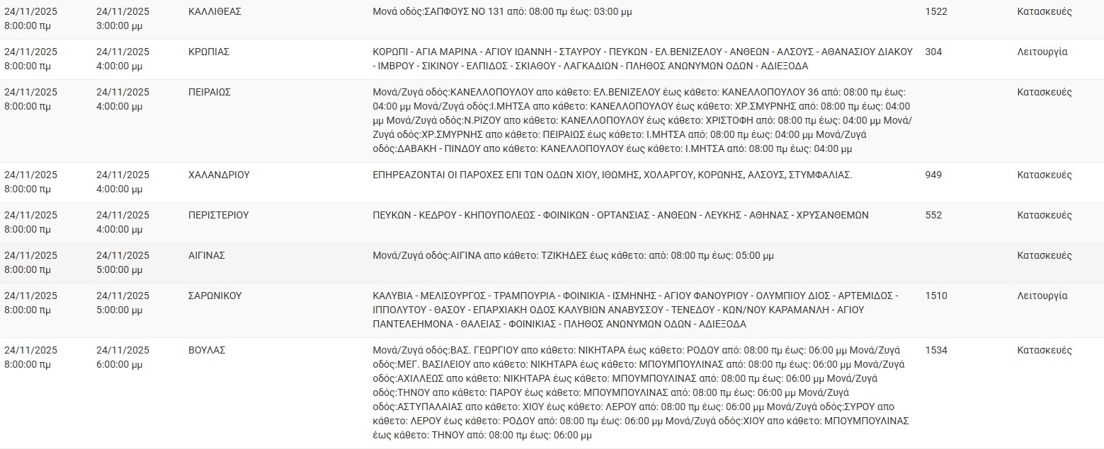 ΔΕΔΔΗΕ: Διακοπές ρεύματος σήμερα (24/11) στην Αθήνα και σε άλλες 14 περιοχές της Αττικής