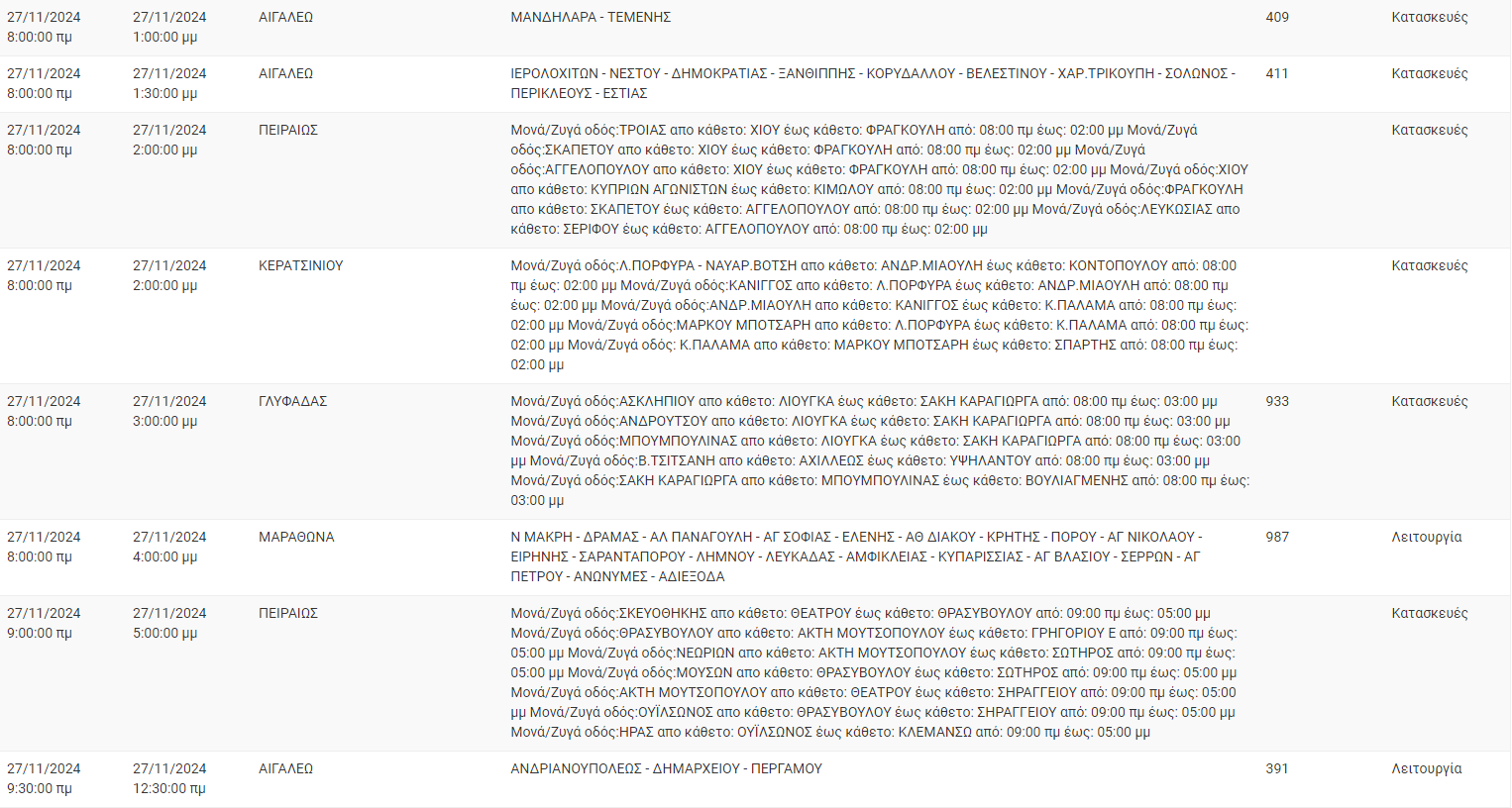 ΔΕΔΔΗΕ: Διακοπές ρεύματος σήμερα (27/11) στην Αθήνα και σε άλλες 7 περιοχές της Αττικής