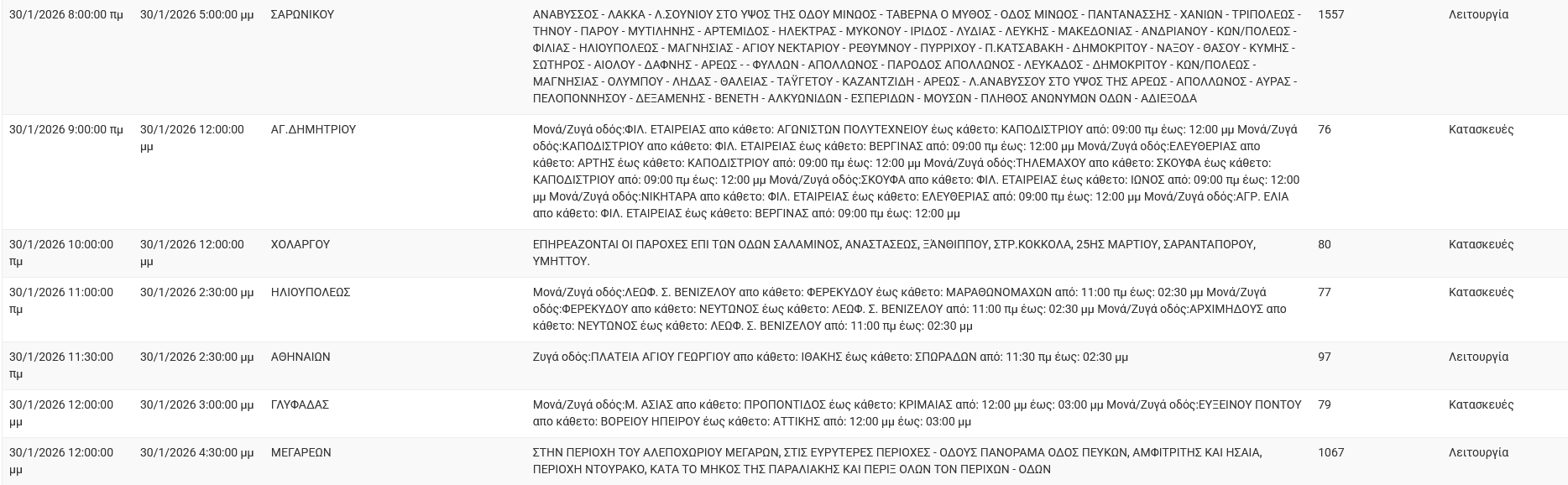 Διακοπές ρεύματος έχει προγραμματίσει για σήμερα, Παρασκευή 30 Ιανουαρίου 2026, ο ΔΕΔΔΗΕ σε διάφορες περιοχές της Αττικής.