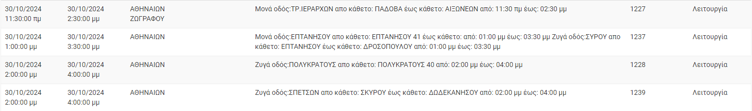 ΔΕΔΔΗΕ: Διακοπές ρεύματος σήμερα (30/10) στην Αθήνα και σε άλλες 9 περιοχές της Αττικής