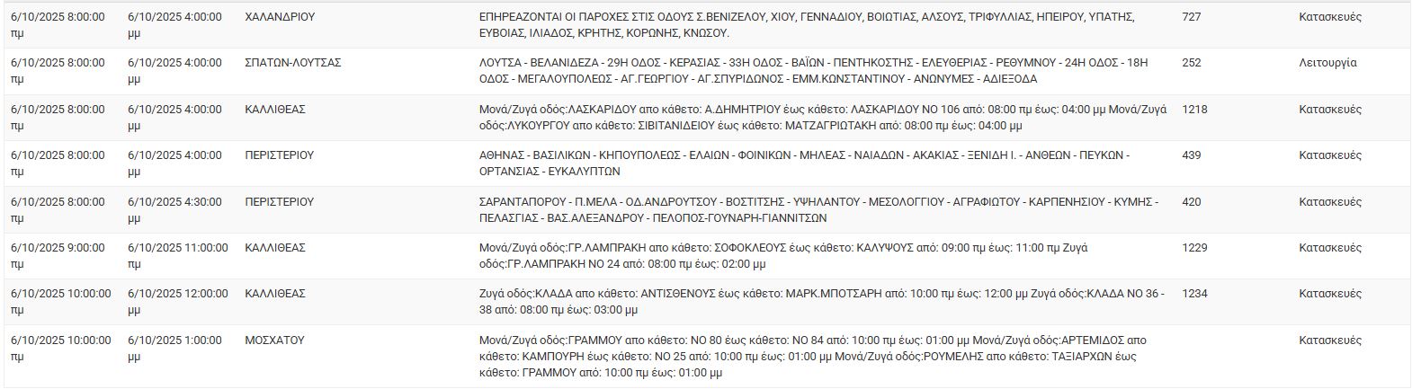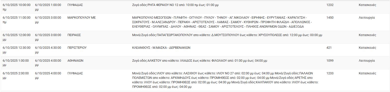 ΔΕΔΔΗΕ: Διακοπές ρεύματος σήμερα (6/10) στην Αθήνα και σε άλλες 10 περιοχές της Αττικής