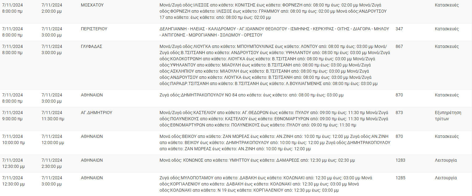 ΔΕΔΔΗΕ: Διακοπές ρεύματος σήμερα (7/11) στην Αθήνα και σε άλλες 7 περιοχές της Αττικής