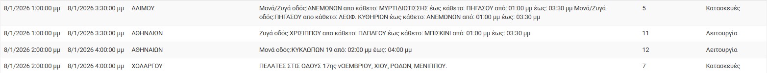 Διακοπές ρεύματος έχει προγραμματίσει για σήμερα, Πέμπτη 8 Ιανουαρίου 2026, ο ΔΕΔΔΗΕ σε διάφορες περιοχές της Αττικής.