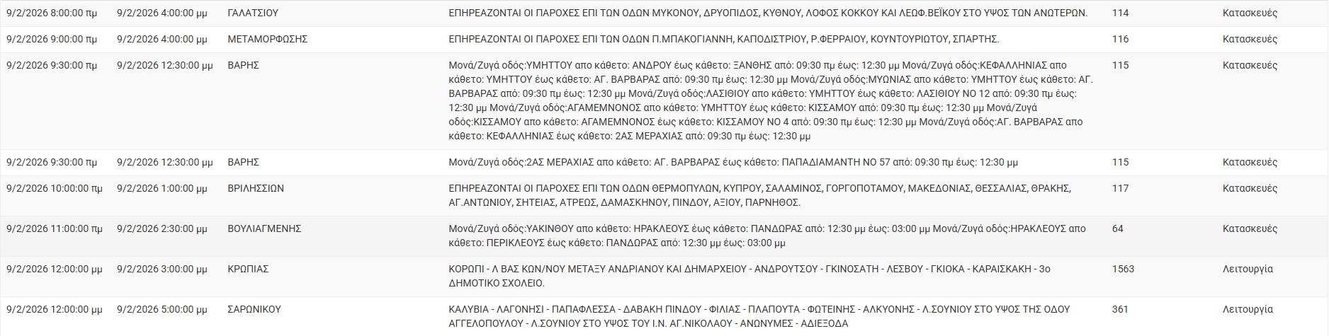 Διακοπές ρεύματος έχει προγραμματίσει για σήμερα, Δευτέρα 9 Φεβρουαρίου 2026, ο ΔΕΔΔΗΕ σε διάφορες περιοχές της Αττικής.