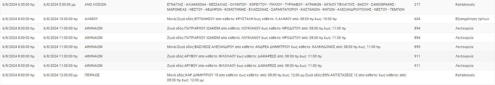 ΔΕΔΔΗΕ: Σε ποιες περιοχές της Αττικής θα γίνουν διακοπές ρεύματος σήμερα (6/8)