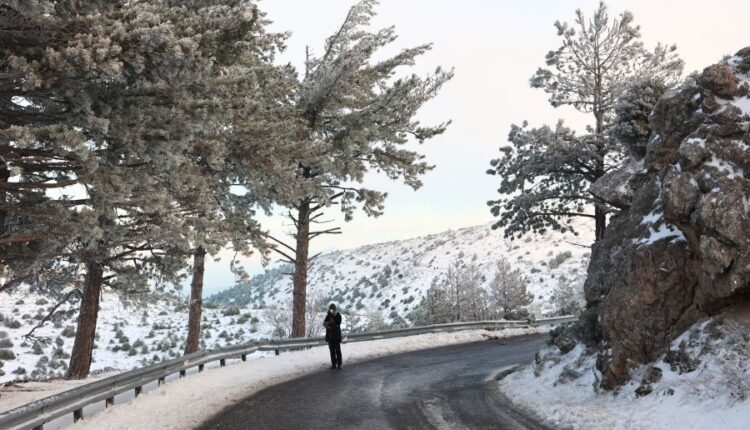 Διακοπή κυκλοφορίας στην λεωφόρο Πάρνηθας από το ύψος του τελεφερίκ λόγω χιονόπτωσης