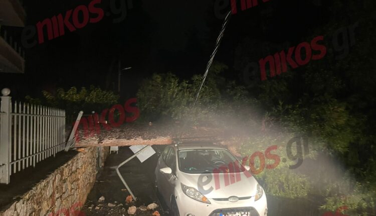 Όπως φαίνεται σε φωτογραφίες και βίντεο που έστειλε αναγνώστης του enikos.gr, το τεράστιο δέντρο έσπασε την περίφραξη της πολυκατοικίας και έπεσε πάνω σε τουλάχιστον δύο οχήματα. Επίσης έχει παρασύρει και ένα καλώδιο.