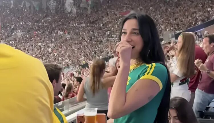 LA CARA LO DICE TODO… Parece que Dua Lipa disfrutó el triunfazo 2-1 de Fluminense en el clásico contra Flamengo en el Maracaná. 🥲⚽🇧🇷