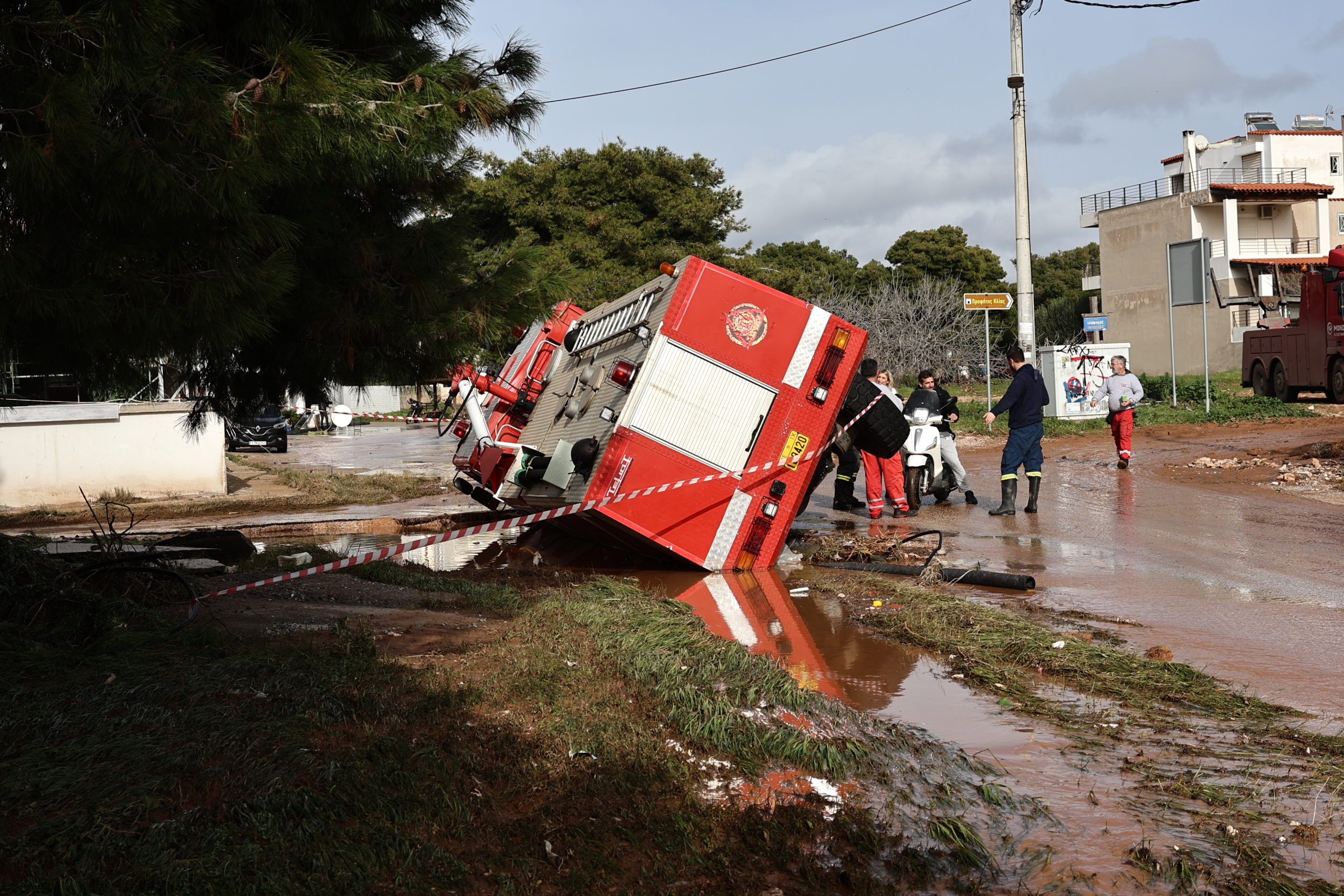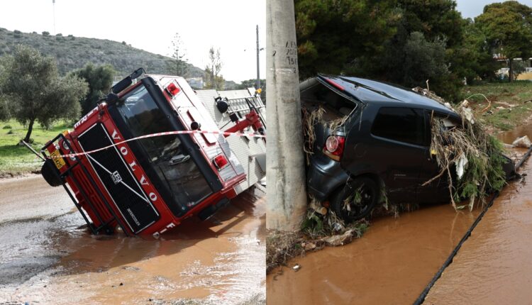 Εικόνες απόλυτης καταστροφής στη Βάρη: Αυτοκίνητα στη λάσπη, ανατράπηκε πυροσβεστικό – ΦΩΤΟ – ΒΙΝΤΕΟ