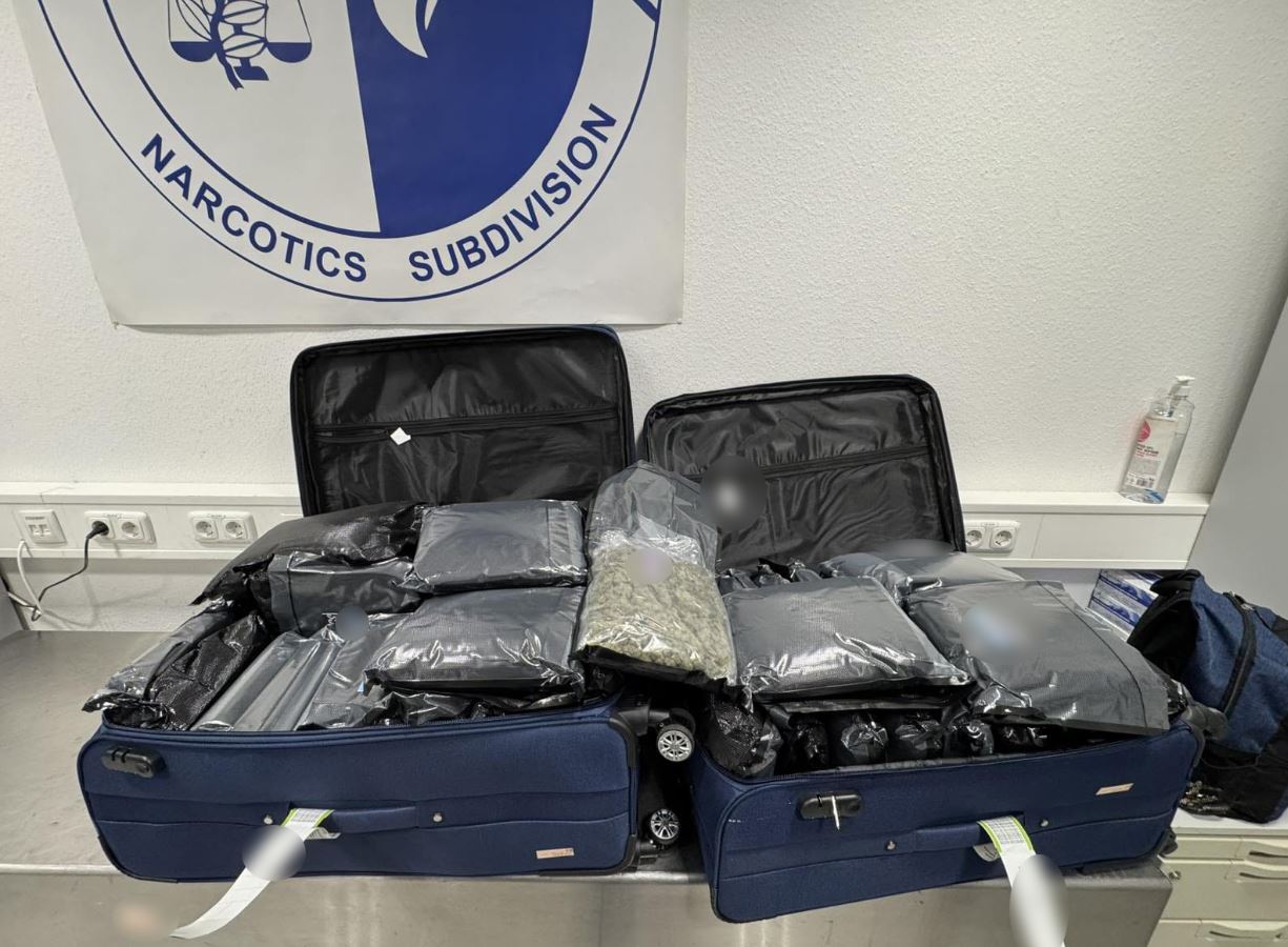 Από τον έλεγχο που πραγματοποιήθηκε στις αποσκευές τους, συνολικά κατελήφθησαν να έχουν αποκρύψει σε νάιλον συσκευασίες εντός των αποσκευών τους, 72 κιλά και 700 γραμμάρια ακατέργαστης κάνναβης υδροπονικής καλλιέργειας (skunk).