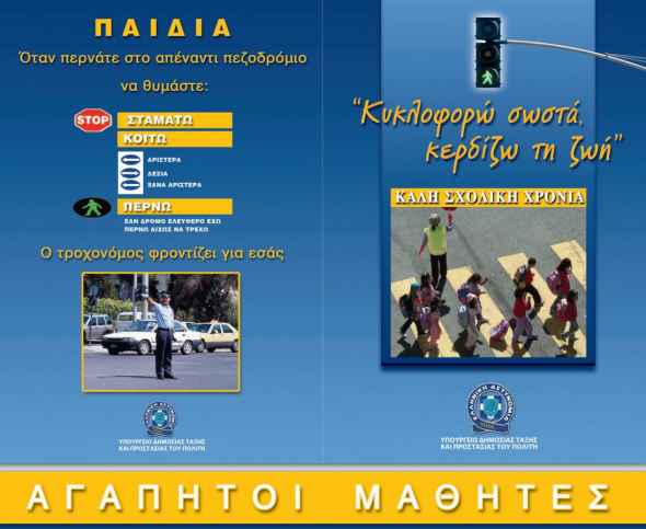 Ενημερωτικά φυλλάδια από την Τροχαία σε μαθητές,γονείς και δασκάλους