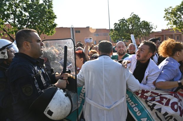 Ένταση έξω από το νοσοκομείο «Αττικόν» κατά την επίσκεψη Μητσοτάκη και Γεωργιάδη