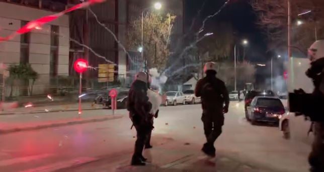 Οι δυνάμεις της ΕΛΑΣ απάντησαν με χρήση χημικών και χειροβομβίδων κρότου λάμψης.