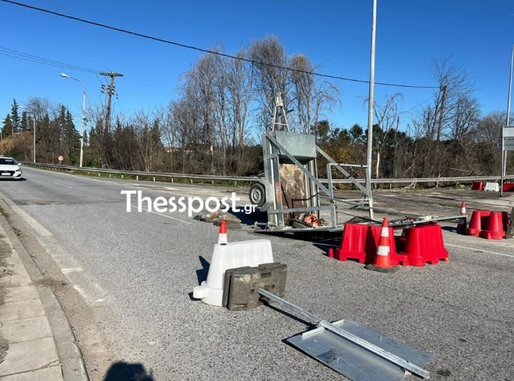 Παράλληλα, όπως μεταδίδει το Thesspost, oι θυελλώδεις άνεμοι στη Θεσσαλονίκη έριξαν κάτω το τρέιλερ της σήμανσης στη διασταύρωση μετά τα «Πράσινα Φανάρια», που προειδοποιεί ότι ο δρόμος είναι κλειστός.