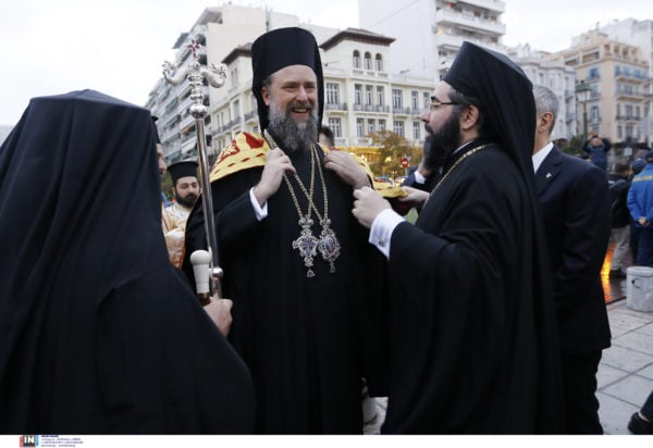 « Την τελευταία Κυριακή που λειτούργησα στη Χαλκίδα , στο ναό του Αγίου Νικολάου όπου βαπτίστηκα ,ανατράφηκα και χειροτονήθηκα από τον άγιο Χαλκίδος , την ώρα της διανομής του αντιδώρου ήρθε κάποιος κύριος και μου λέει: “στο τέλος σας θέλω κάτι”. Περίμενε ο άνθρωπος να δώσω το αντίδωρο και μόλις τελείωσα ήρθε κοντά μου και μου λέει: “θέλω κάτι να σας δώσω για τη Θεσσαλονίκη”. Λέω “ευχαρίστως , πότε θέλετε να συναντηθούμε;” Συναντηθήκαμε μία ημέρα και μου έφερε αυτή την εικόνα .
