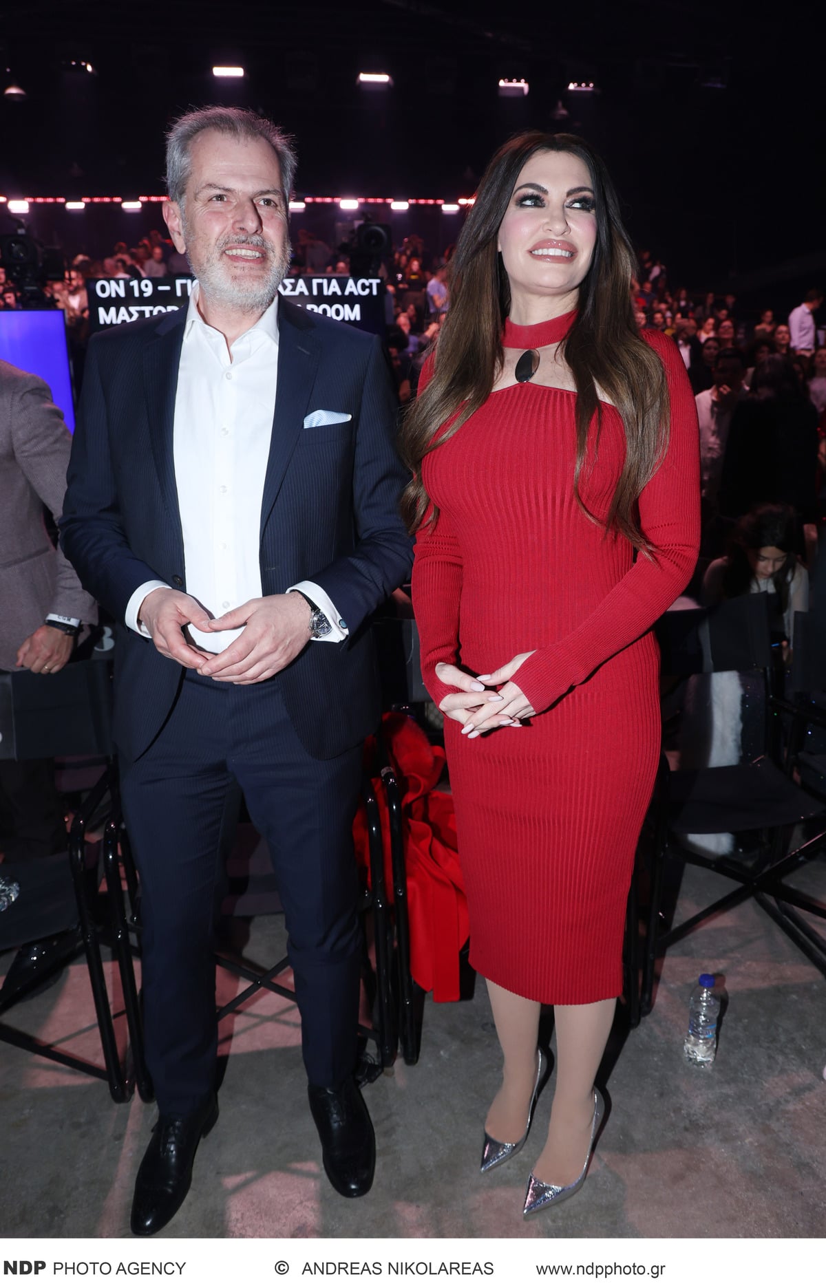 Η ίδια, συνοδευόμενη από τον γιο της Ρόναν, εμφανίστηκε με μακρύ κόκκινο φόρεμα και ασημί γόβες, ενώ απαθανατίστηκε σε φωτογραφίες μαζί με τον πρόεδρο της ΕΡΤ, Γιάννη Παπαδόπουλο.