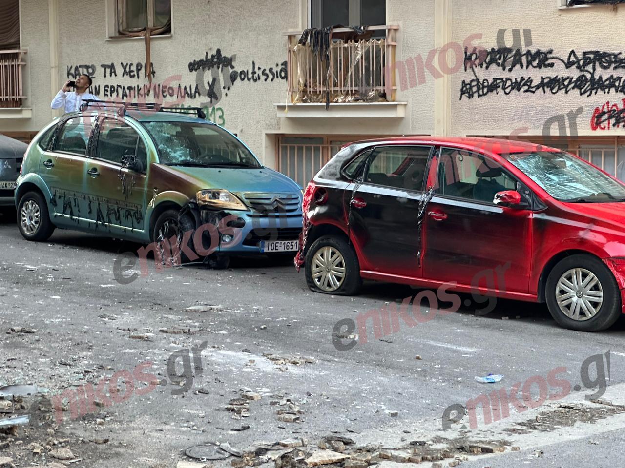 Από την πυρκαγιά προκλήθηκαν ζημιές σε 10 αυτοκίνητα, ενώ 3 καταστράφηκαν ολοσχερώς. Παράλληλα, ζημιές προκλήθηκαν και σε δυο απέναντι πολυκατοικίες σε παντζούρια και τέντες.
