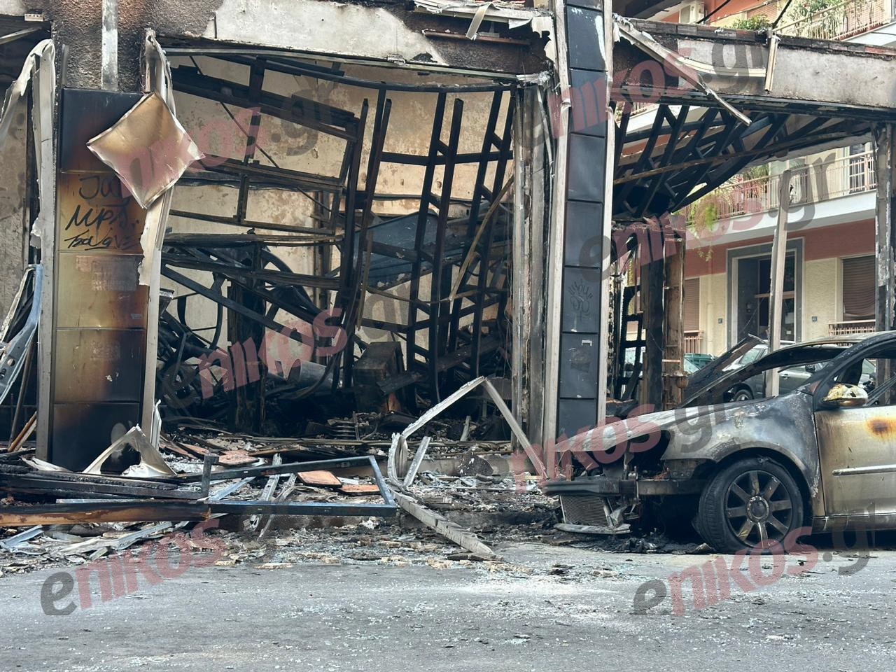 Βομβαρδισμένο τοπίο θυμίζει το σκηνικό στα Πατήσια, έπειτα από την μεγάλη φωτιά που κατέστρεψε ολοσχερώς ένα τριώροφο κτίριο ενώ σημειώθηκαν σοβαρές ζημιές και σε αυτοκίνητα, το βράδυ του Σαββάτου (15/06).