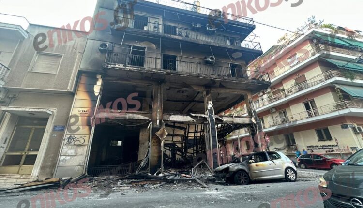 Φωτιά στα Πατήσια: Καταστράφηκε ολοσχερώς το τριώροφο κτίριο – Σοβαρές ζημιές και σε αυτοκίνητα – ΦΩΤΟ