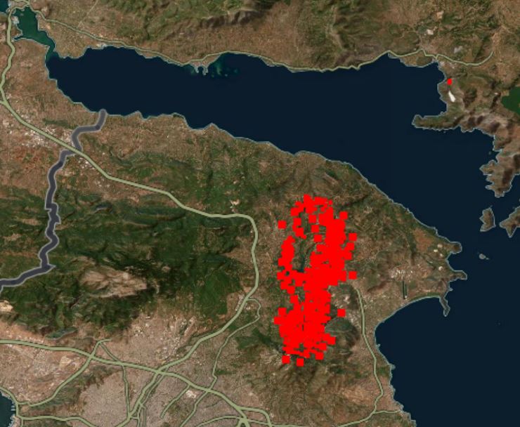 Το πύρινο μέτωπο στην Αττική φθάνει σε μήκος τα 30 χιλιόμετρα, ενώ οι φλόγες ξεπερνούν σε κάποια σημεία ακόμα και τα 25 μέτρα σε ύψος.