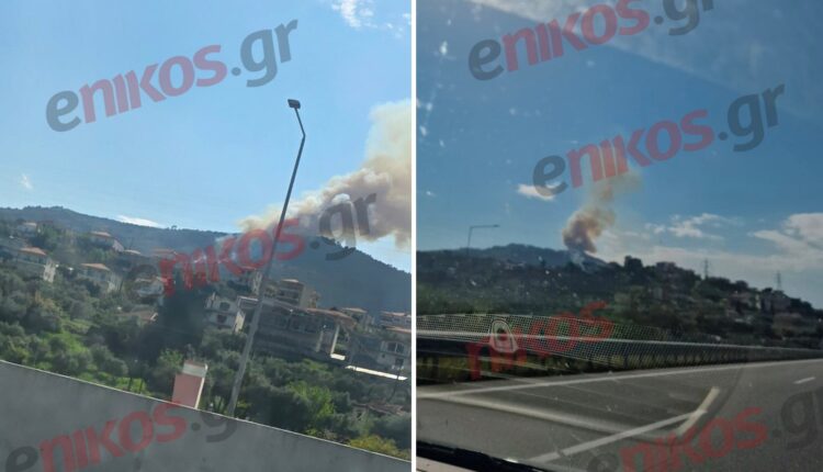Ήχησε το 112 για τη φωτιά που καίει από το μεσημέρι του Σαββάτου 18 Απριλίου στην περιοχή Άμπελος στην Ακράτα Αχαΐας.