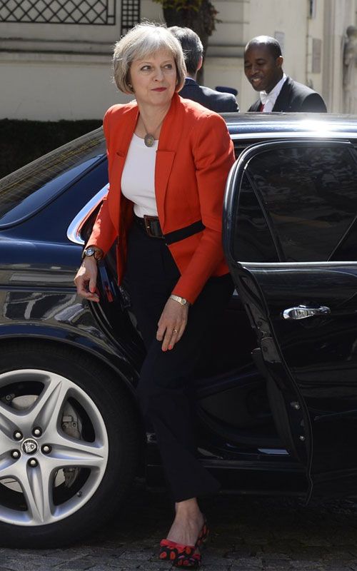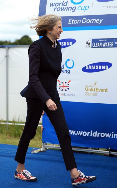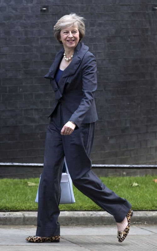 Ταγιέρ σε έντονα χρώματα, παλτό με μοτίβα, επώνυμες τσάντες και φυσικά μια μεγάλη συλλογή από παπούτσια για την οποία μιλούν όλοι, συνθέτουν την γκαρνταρόμπα της νέας πρωθυπουργού της Μεγάλης Βρετανίας. Οι λεοπάρ γόβες τις οποίες φορούσε η δεύτερη γυναίκα πρωθυπουργός στην ιστορία της χώρας όταν ορκίστηκε έκανε τον κόσμο της μόδας να την προσέξει και τις δυναμικές γυναίκες να την χρίσουν το νέο τους style icon.