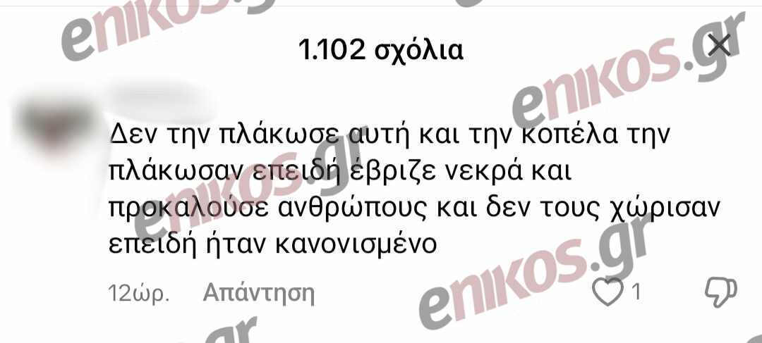 Μερίδα χρηστών που εμφανίζονται ως υποστηριχτές της Ι. σε αυτή την «αρένα» που πλέον είναι εκτός ελέγχου, γράφει πως «την 14χρονη δεν την πλάκωσε η Ι.. Την κοπέλα την πλάκωσαν επειδή έβριζε “νεκρά” και προκαλούσε ανθρώπους. Δεν τις χώρισαν επειδή ήταν κανονισμένο».