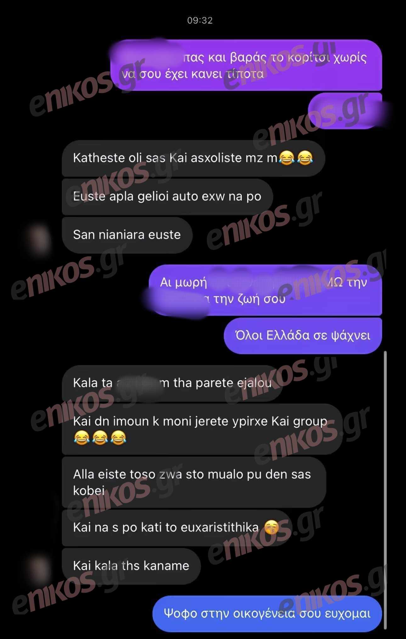 Κοπέλα: Αι μωρή πουτ@@@, βρω@@, γαμ@@ την πουτ@@ την ζωή σου. Όλη η Ελλάδα σε ψάχνει.