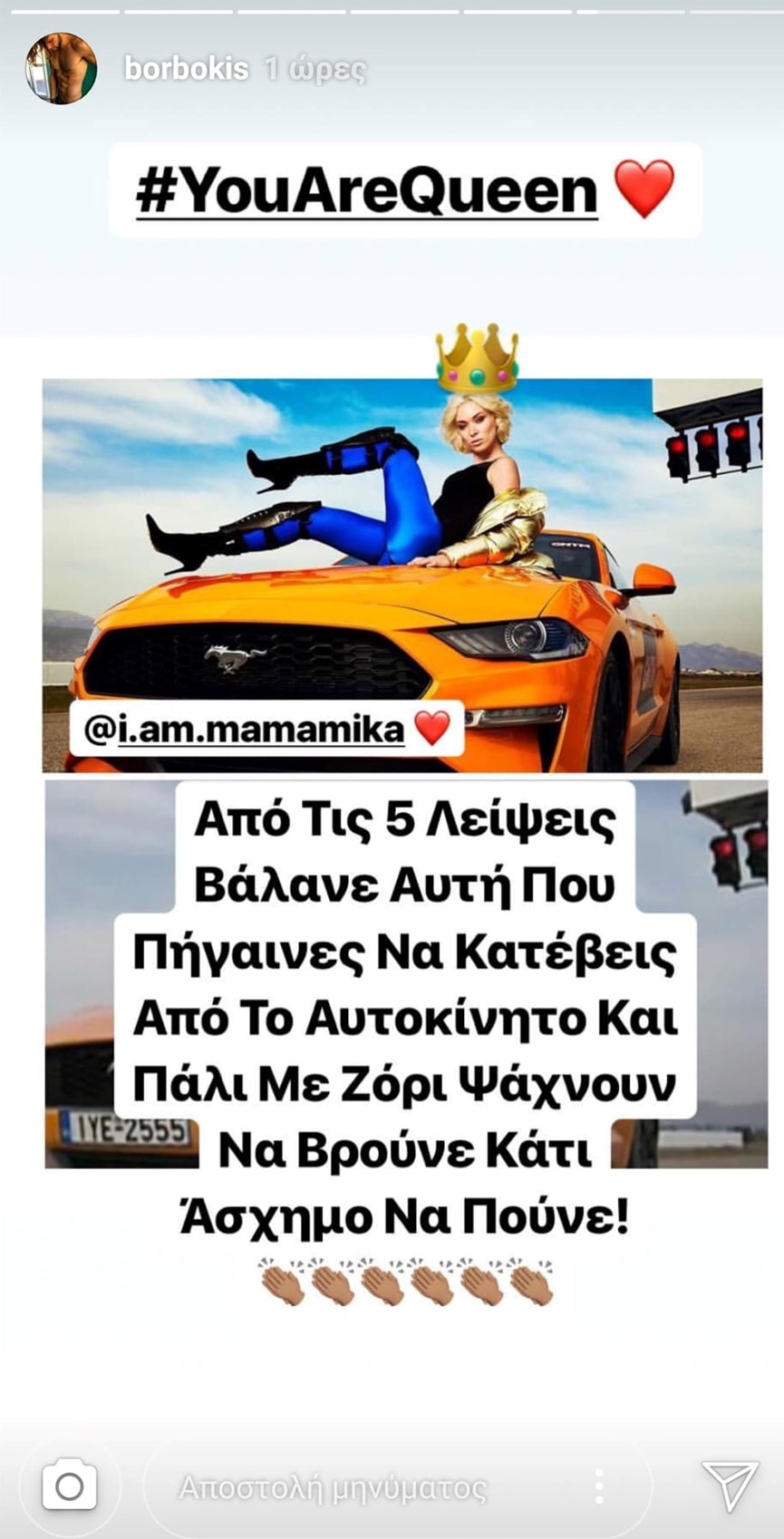 Την ίδια άποψη με το μοντέλο, φαίνεται πως είχε και ο αγαπημένος της, ο οποίος έγραψε στα instastories: «Από τις πέντε λήψεις βάλανε αυτή που πήγαινες να κατέβεις από το αυτοκίνητο και πάλι με το ζόρι ψάχνουν να βρούνε κάτι άσχημο να πούνε»!